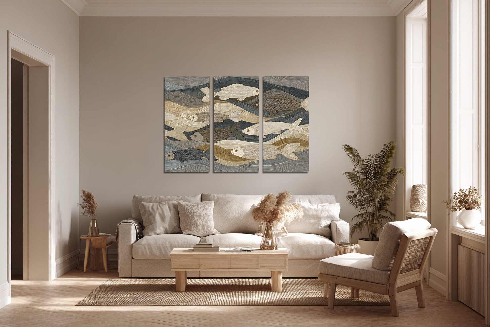 „Marinae” wprowadza do przestrzeni świeżość i spokój. Segmentowy układ buduje wrażenie przestronności i równowagi, tworząc dekor o lekkim, eleganckim charakterze.