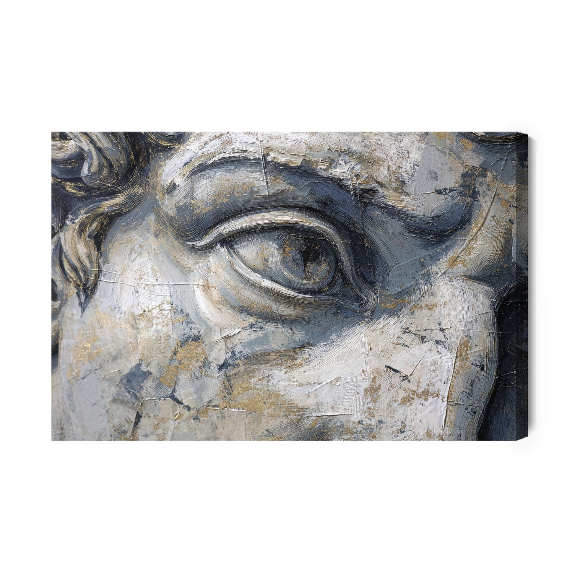 Monumentalne spojrzenie uchwycone w detalu – fragment jednej z najsłynniejszych rzeźb świata. Faktura pędzla podkreśla potęgę kamienia, a jednocześnie nadaje dziełu nowoczesny charakter. To obraz, który wnosi do wnętrza aurę klasyki, siły i ponadczasowego piękna.