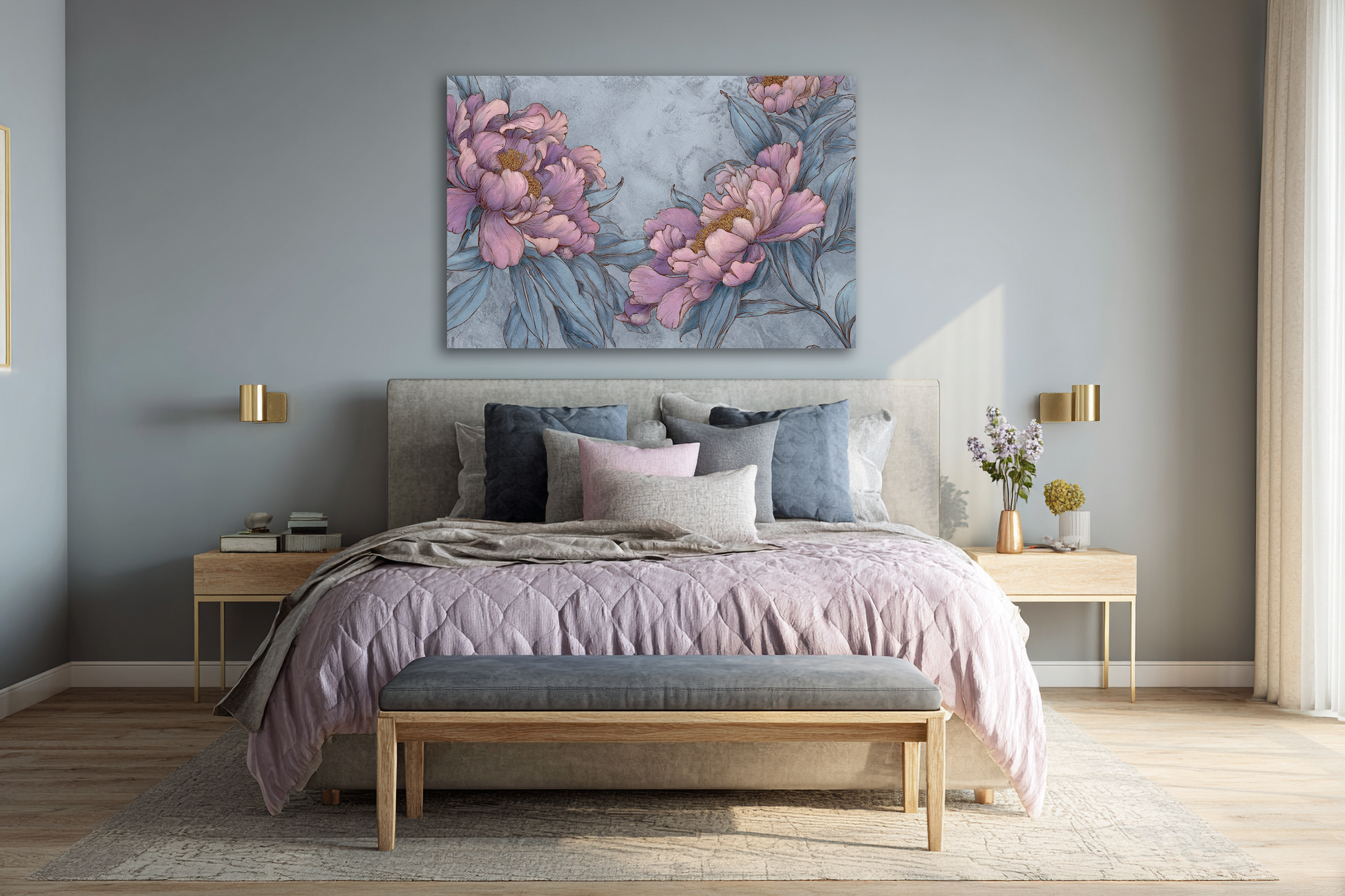 Wyjątkowa kompozycja pełna subtelności i elegancji. Delikatne kwiaty w pastelowych barwach emanują spokojem, tworząc atmosferę harmonii i wyrafinowanego piękna. Obraz, który doda wnętrzu lekkości i klasy.