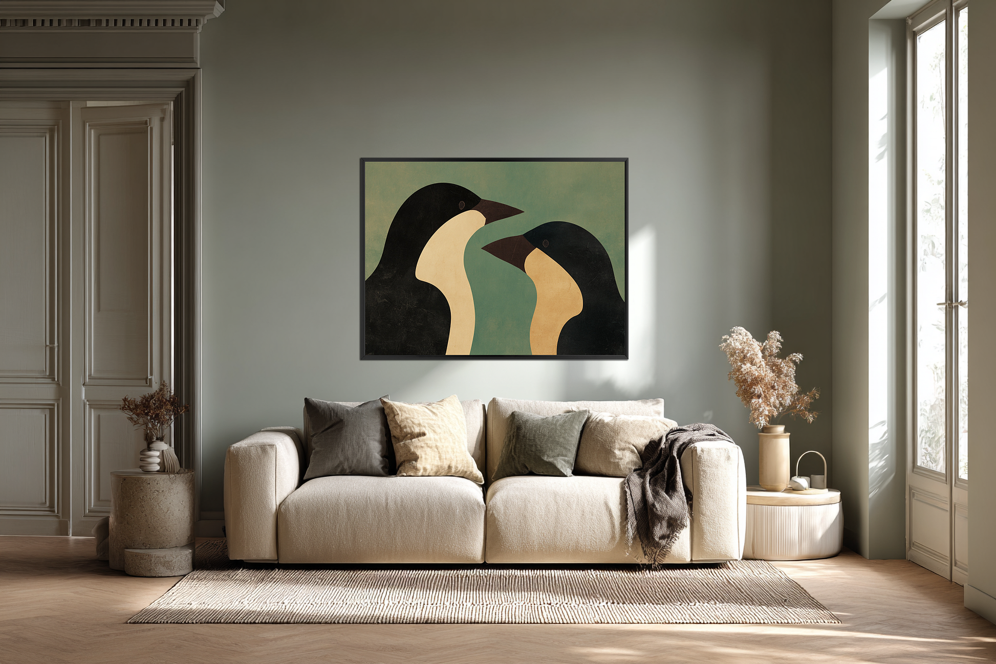 „Duetto” to nowoczesna, graficzna interpretacja relacji i dialogu. Proste formy i wyważona kompozycja tworzą dekor o czytelnym, ale nienachalnym charakterze. Obraz dobrze odnajduje się w nowoczesnych przestrzeniach, porządkując je wizualnie.
